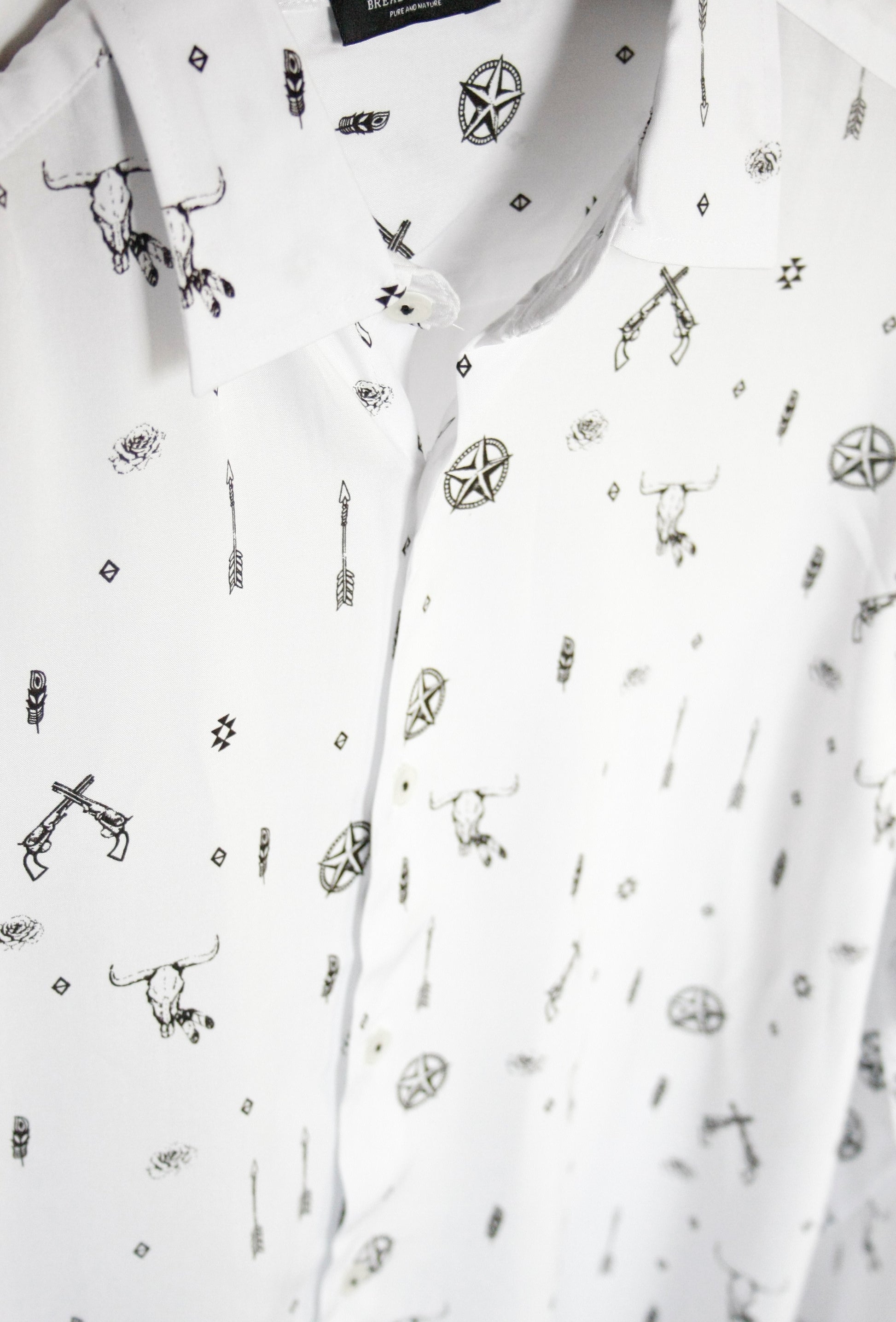Leichtes Western Motive Hemd weiß Herren M