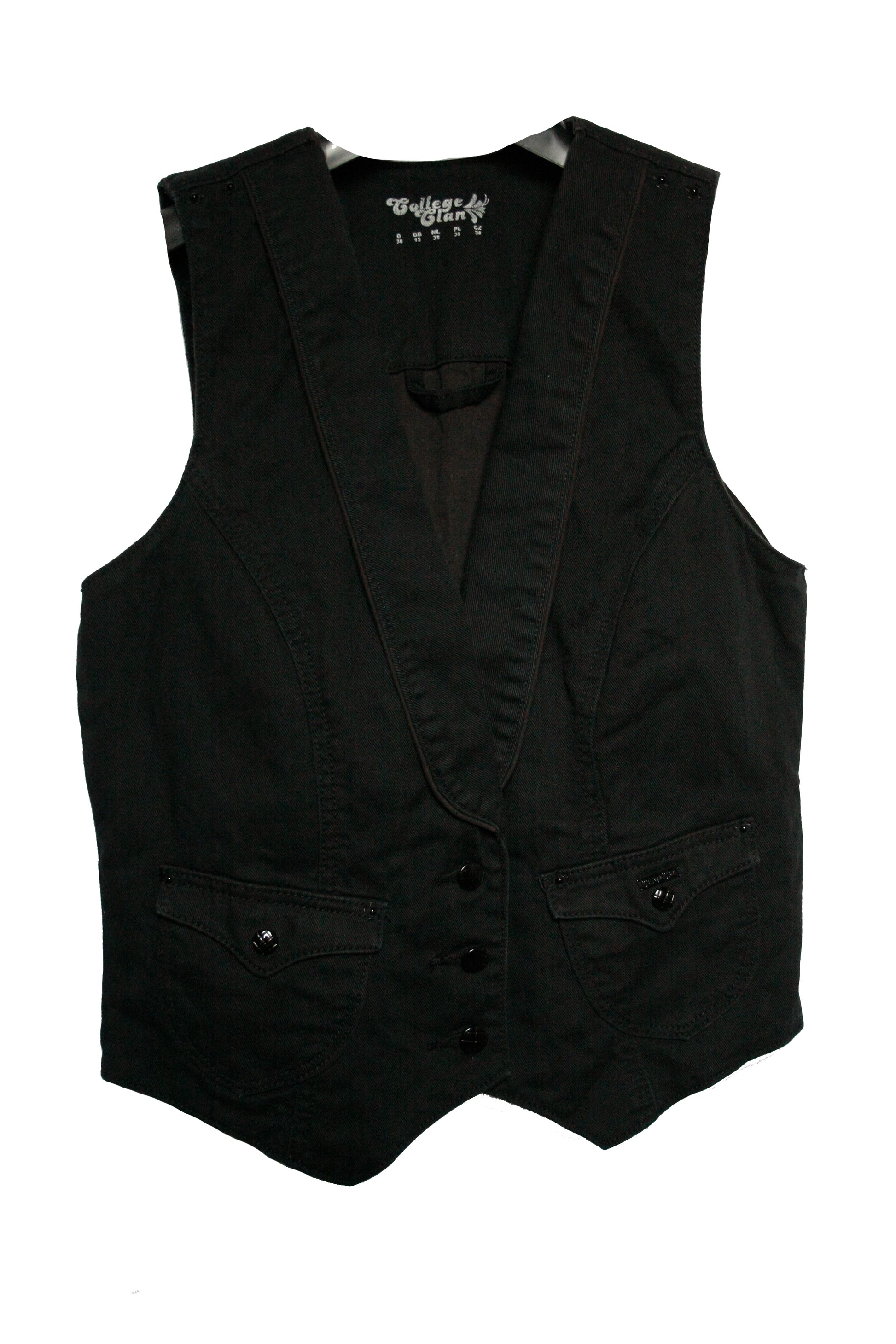 schlichte Ranch Riding Weste Jeans schwarz mit Taschen, hinten Größenverstellbar