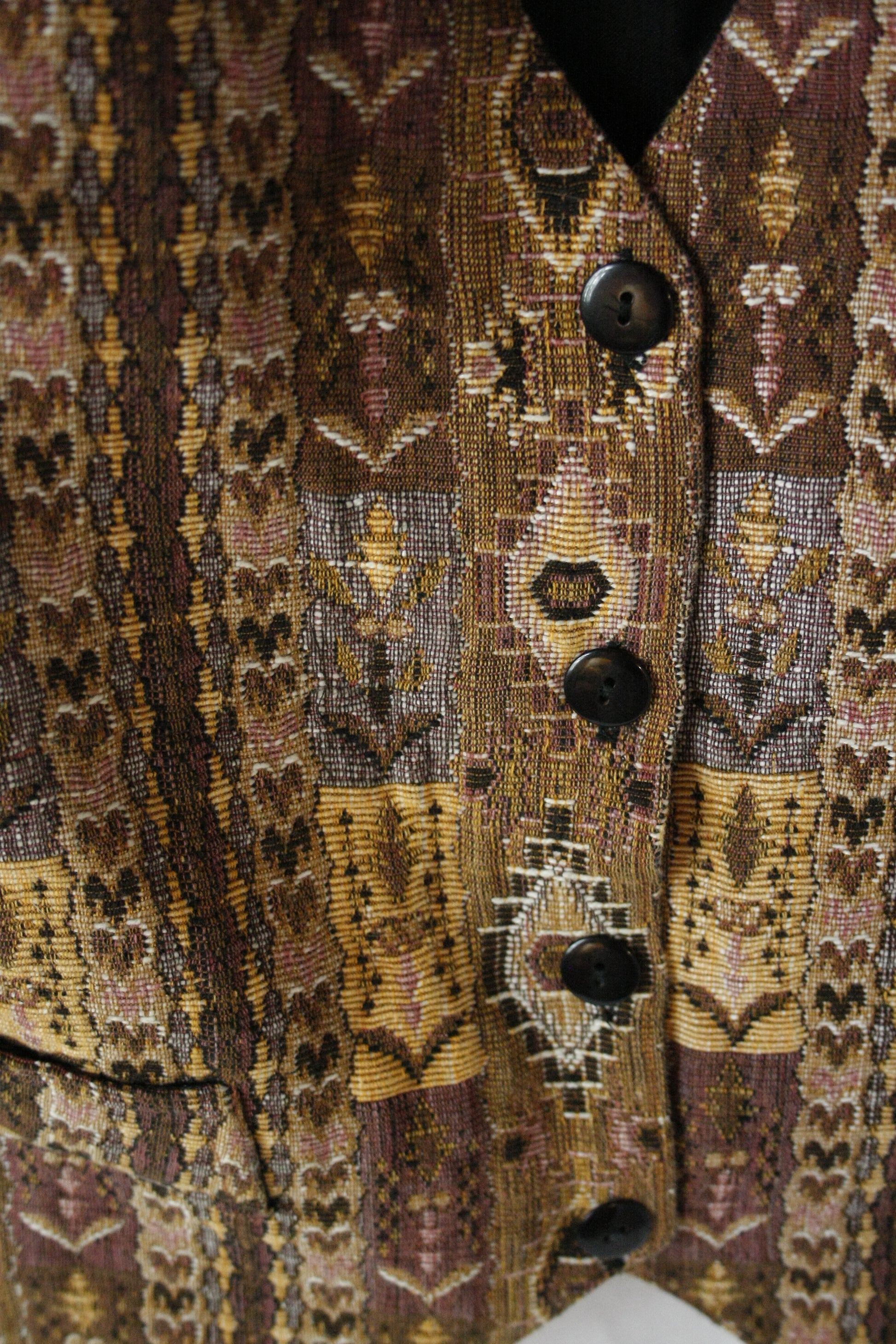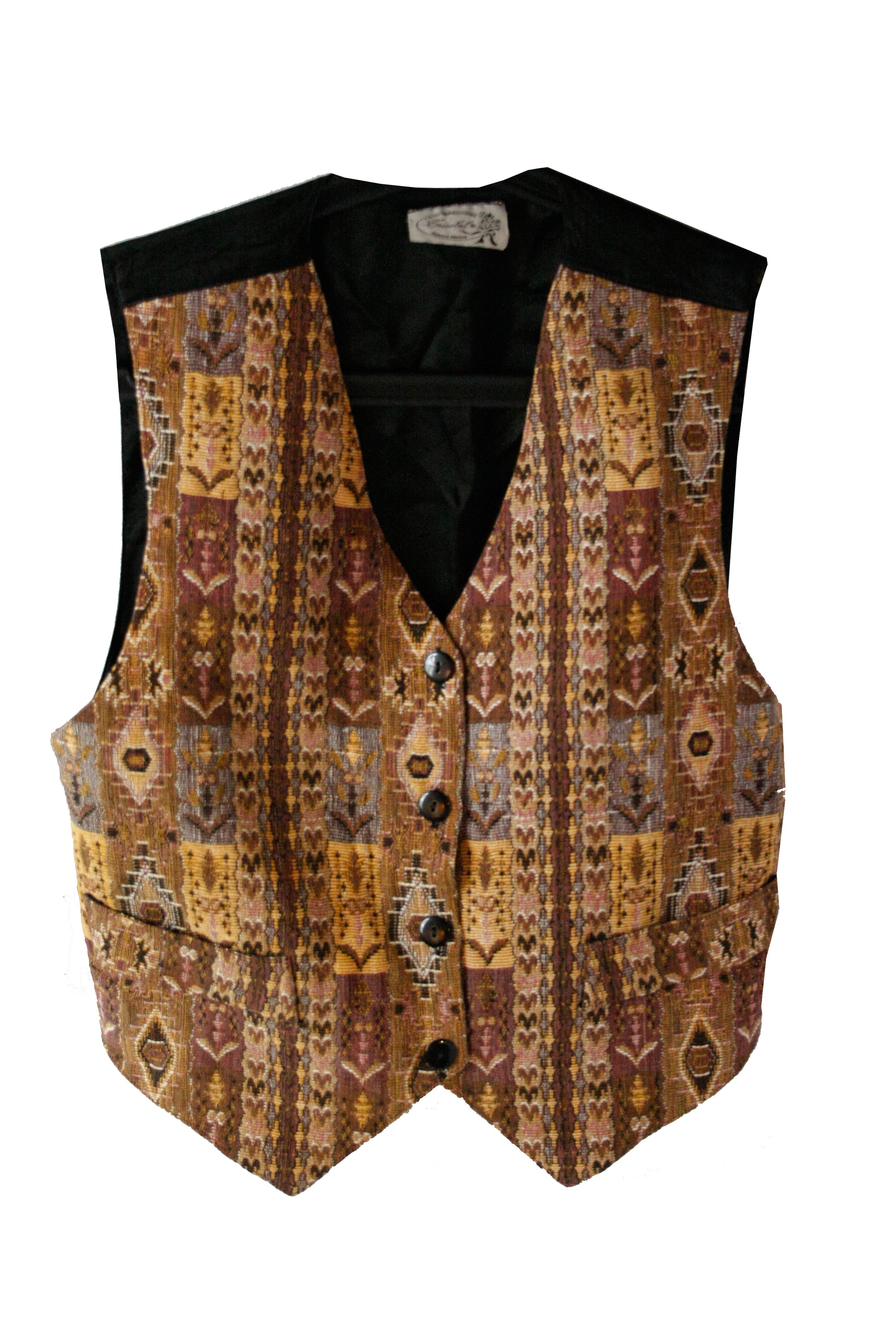 Wunderschöne Ranch Riding Weste Leinen Patchwork Pattern, Rücken Satin größenverstellbar