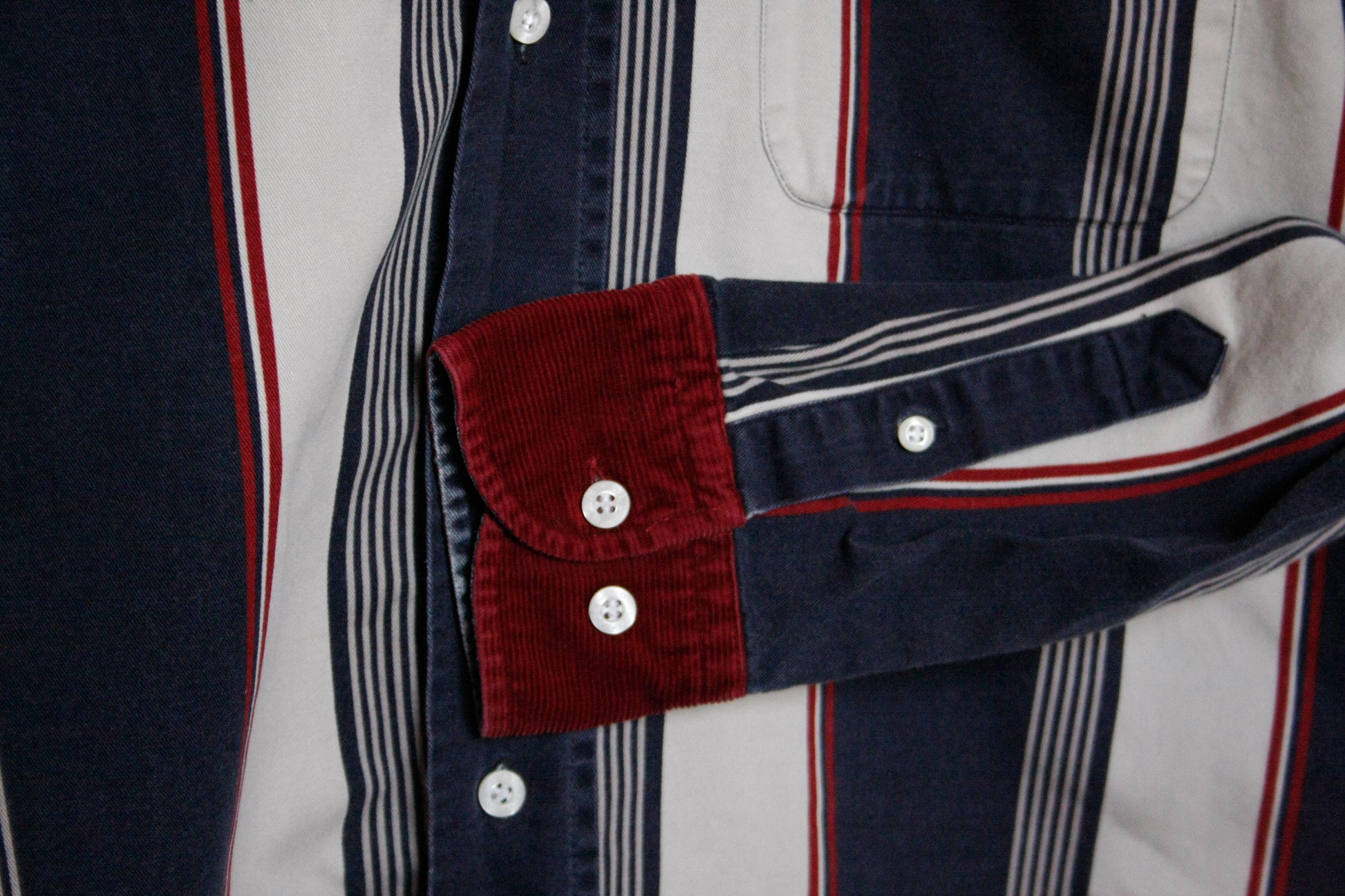 Showhemd Ranch Riding Stripes Blau mit dunkelroten Cord Ärmel Enden