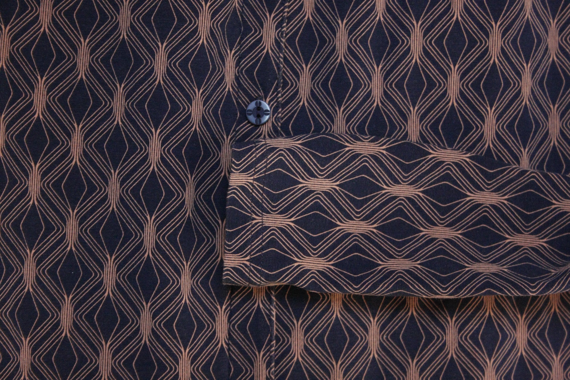 Showhemd für Ranchriding mit geometrisches Muster, Farben dunkelblau/rosa