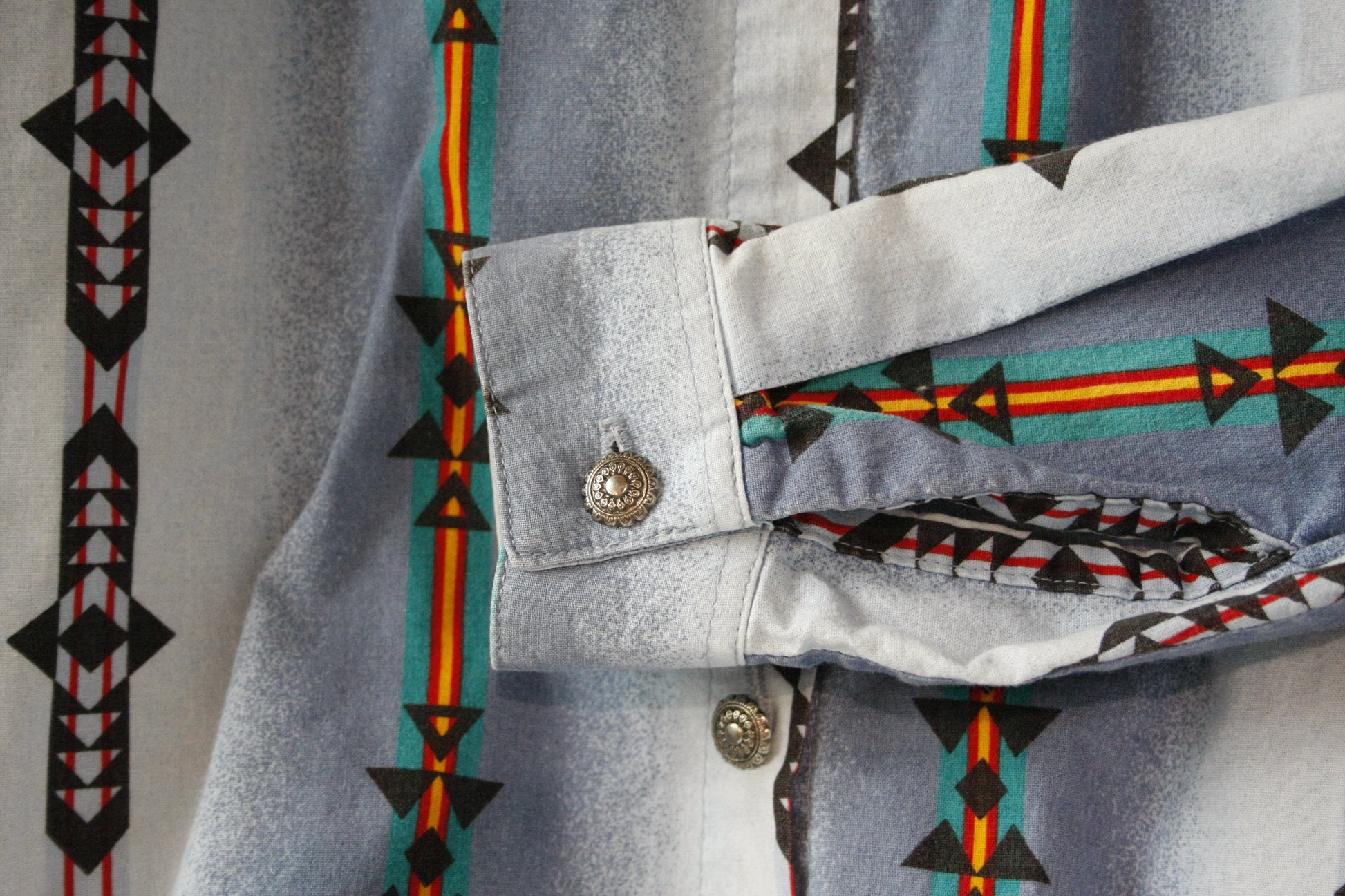 Showoberteil mit coolem Aztec Pattern und Punzierten Knöpfen in der Farbe hellblau/grün/rot/gelb