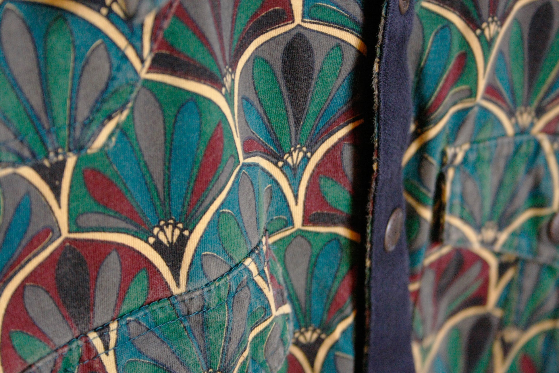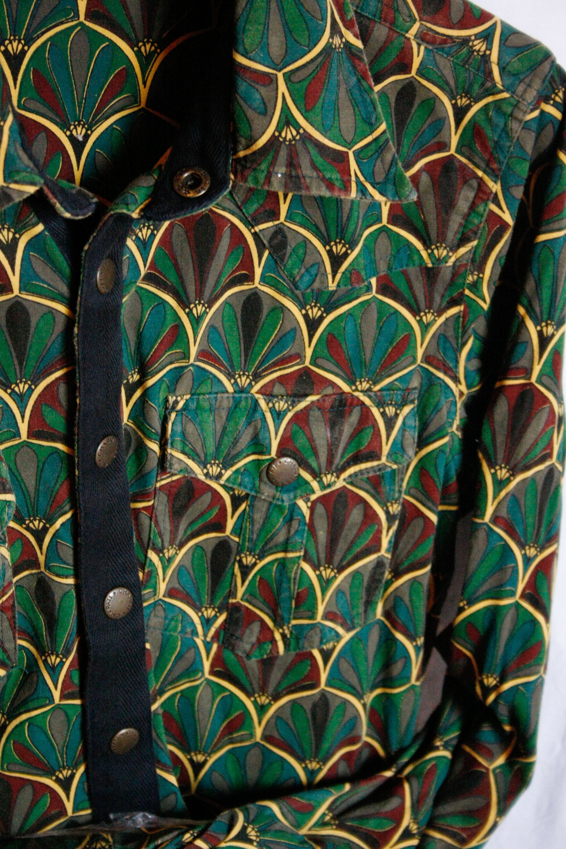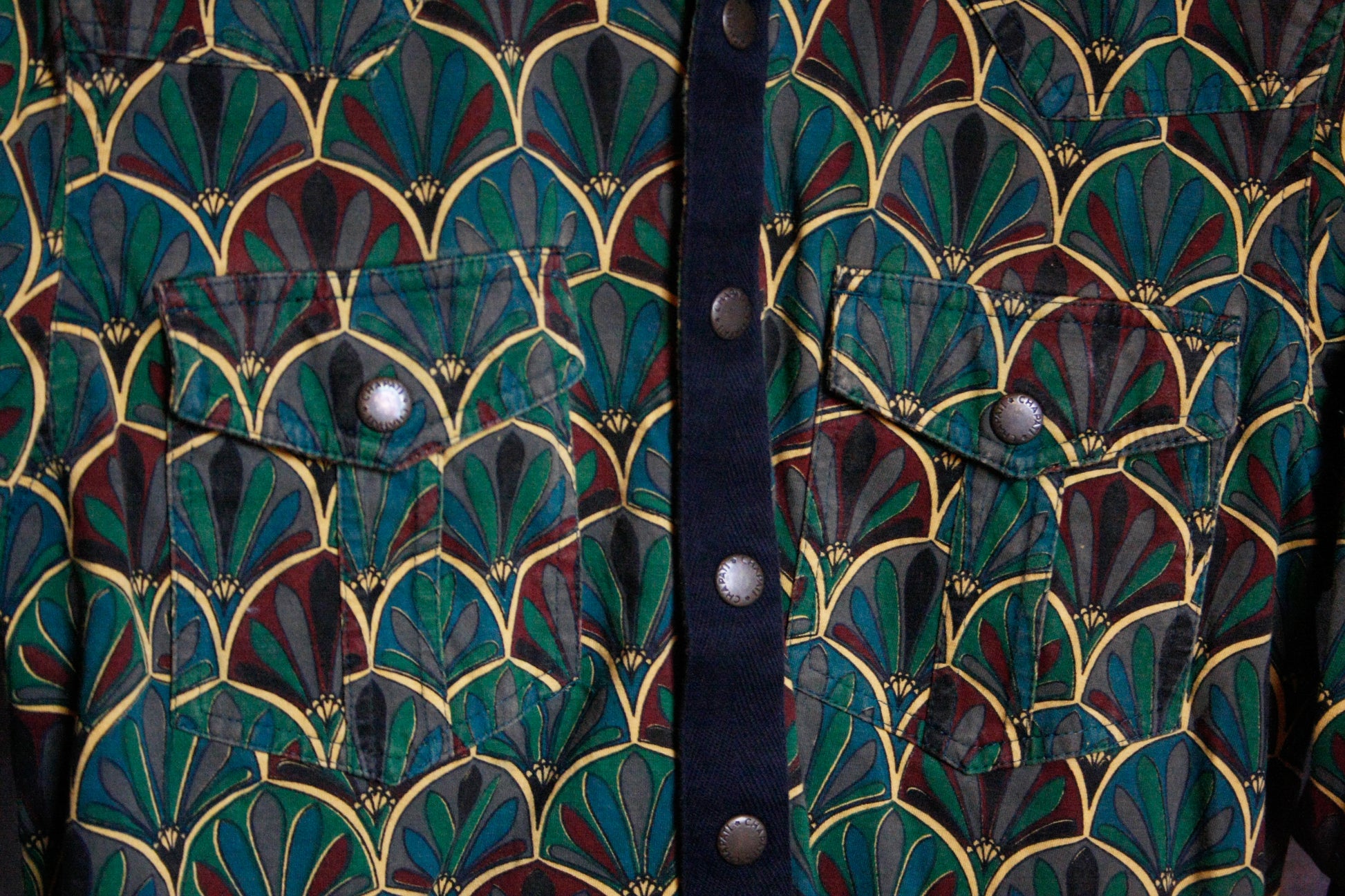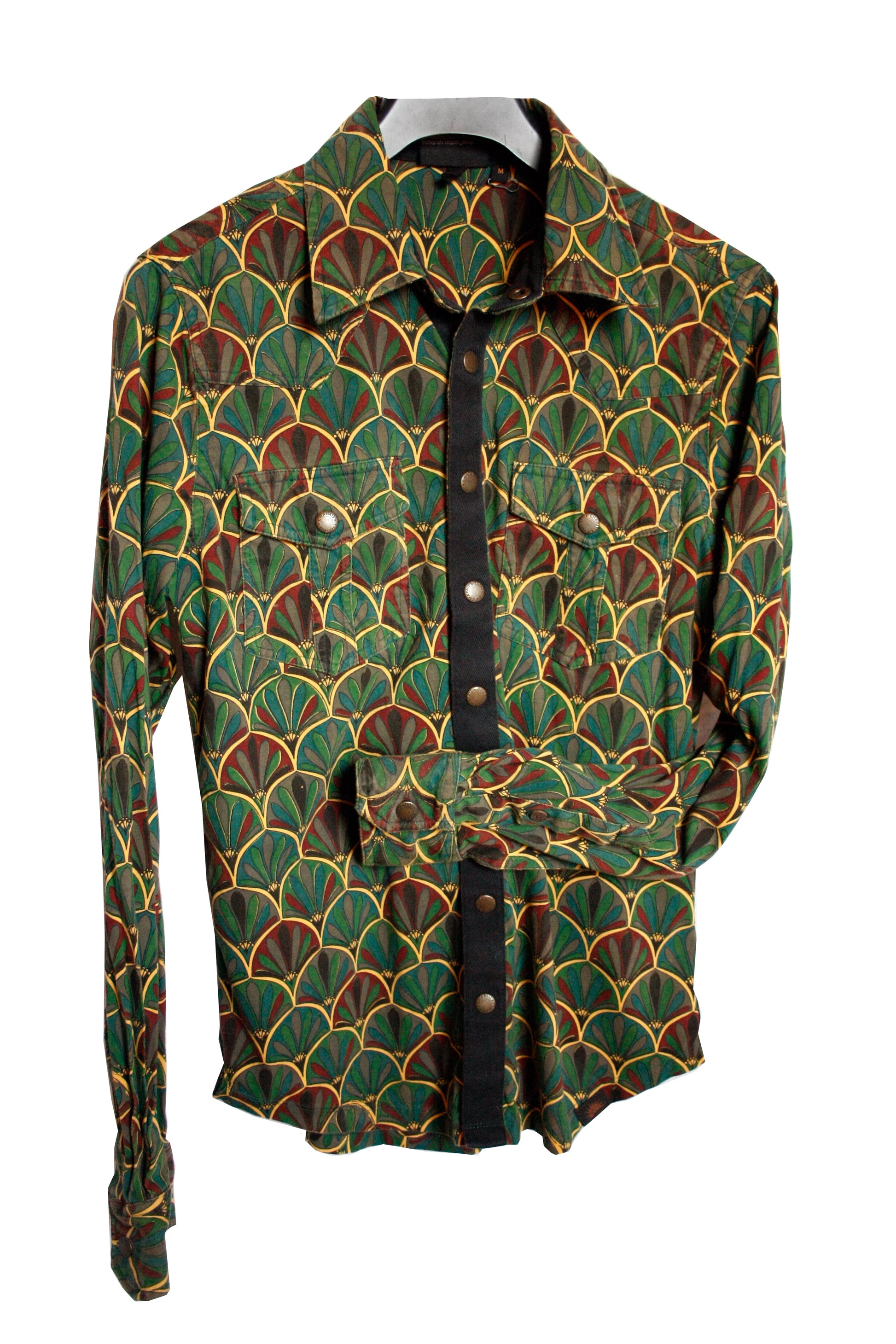 Showhemd für Ranchriding mit 70s Muster, Farben Grün/Gelb/Rot