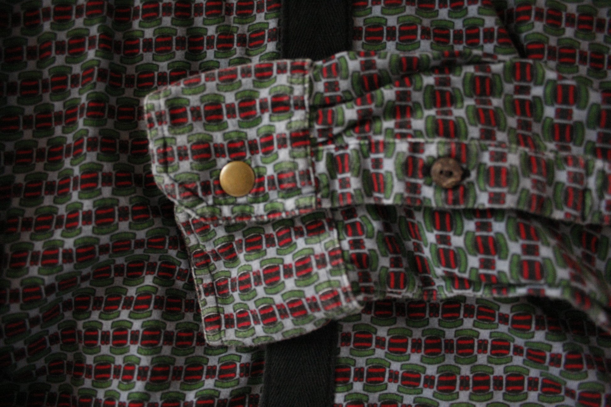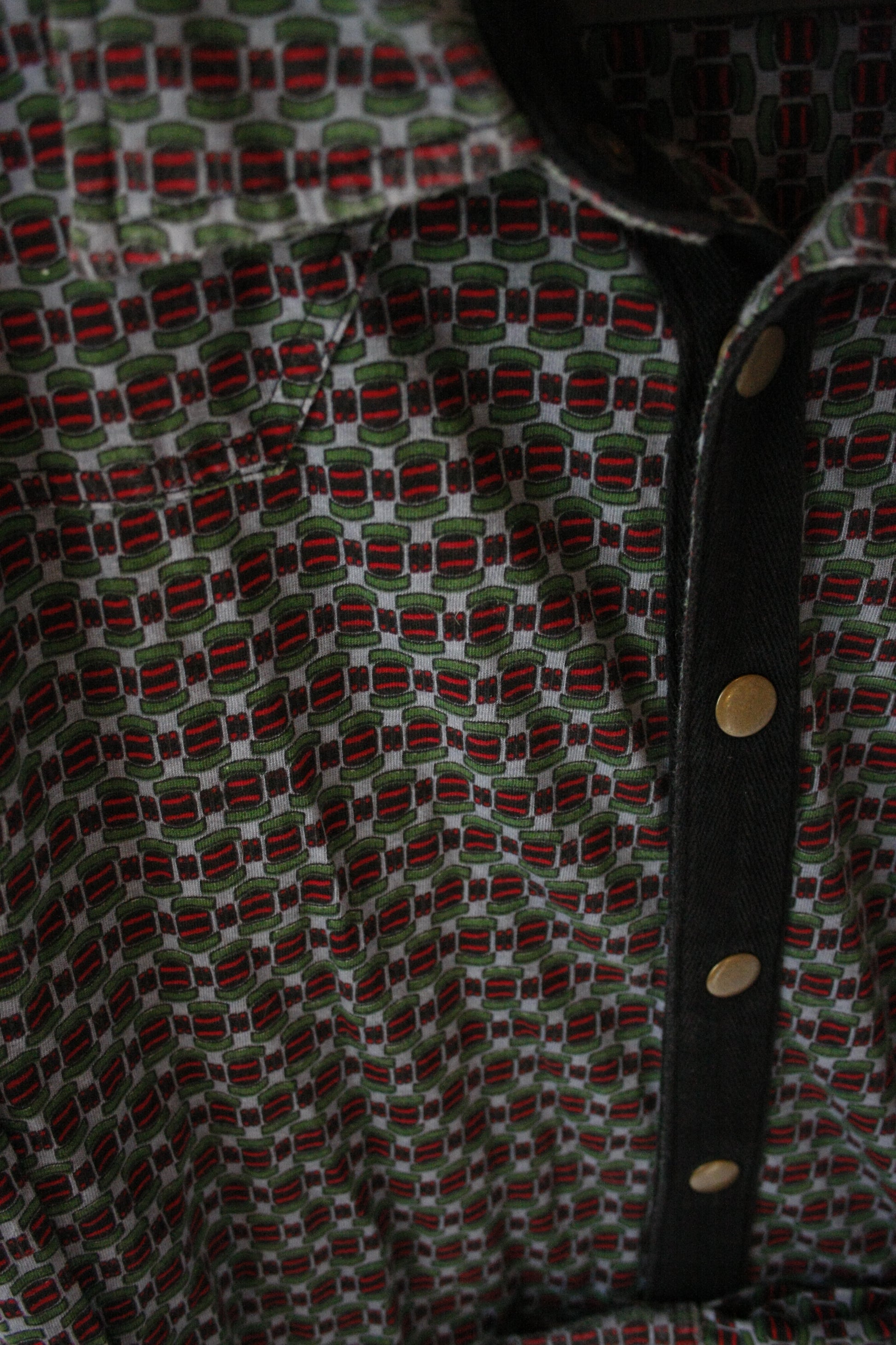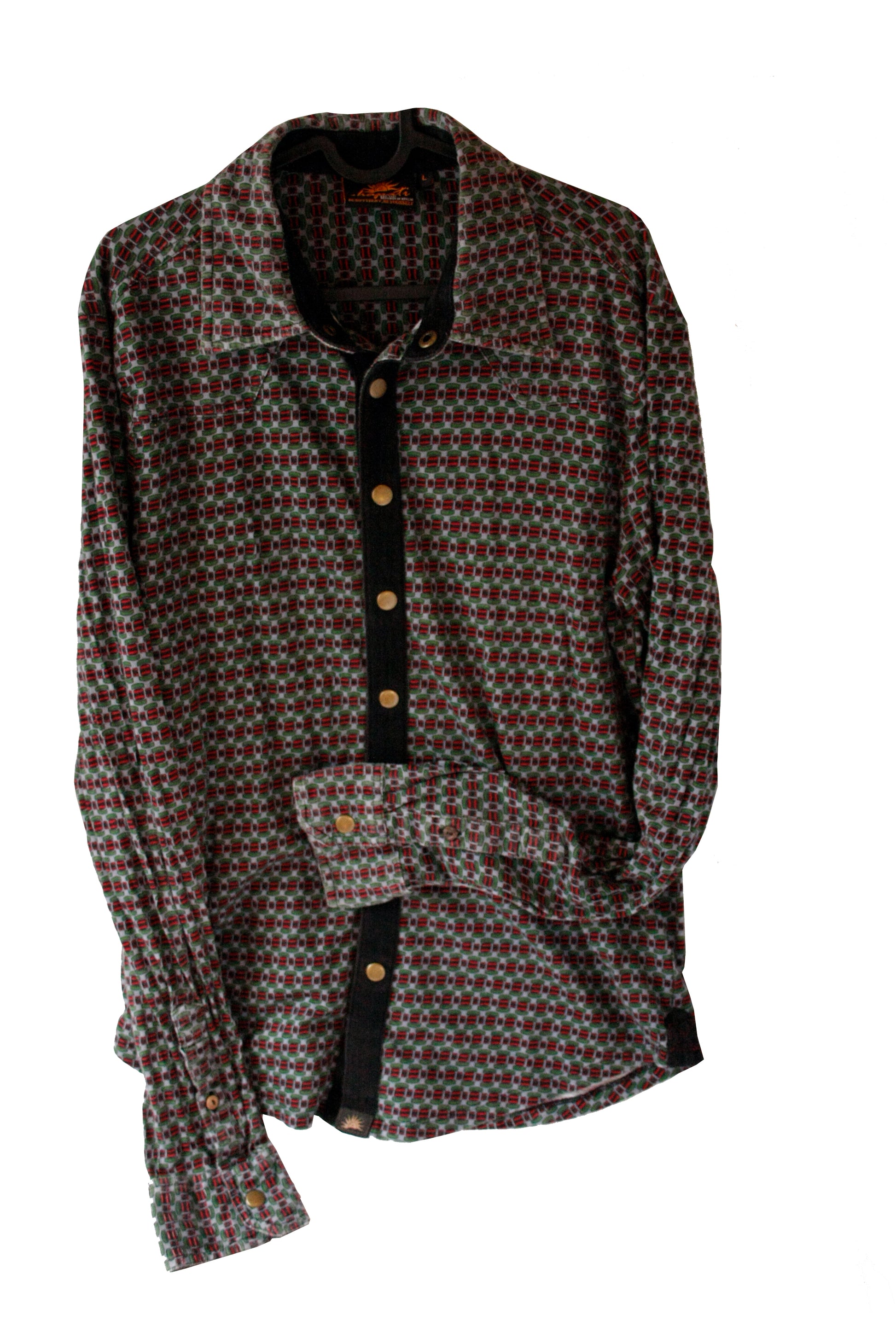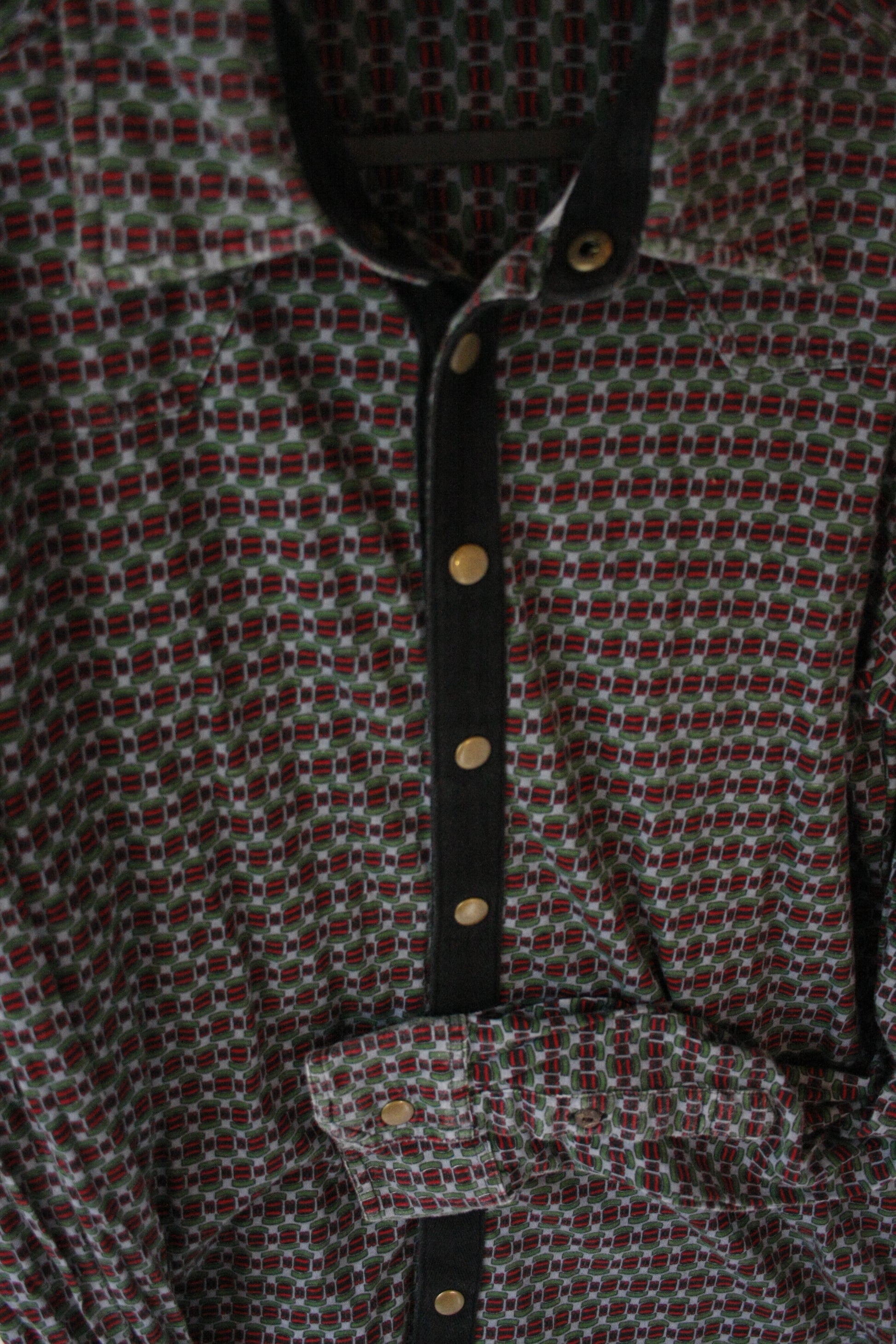 Showoberteil Ranchriding mit Metal Snaps in Geometrischem Muster in den Farben grün/hellblau/rot