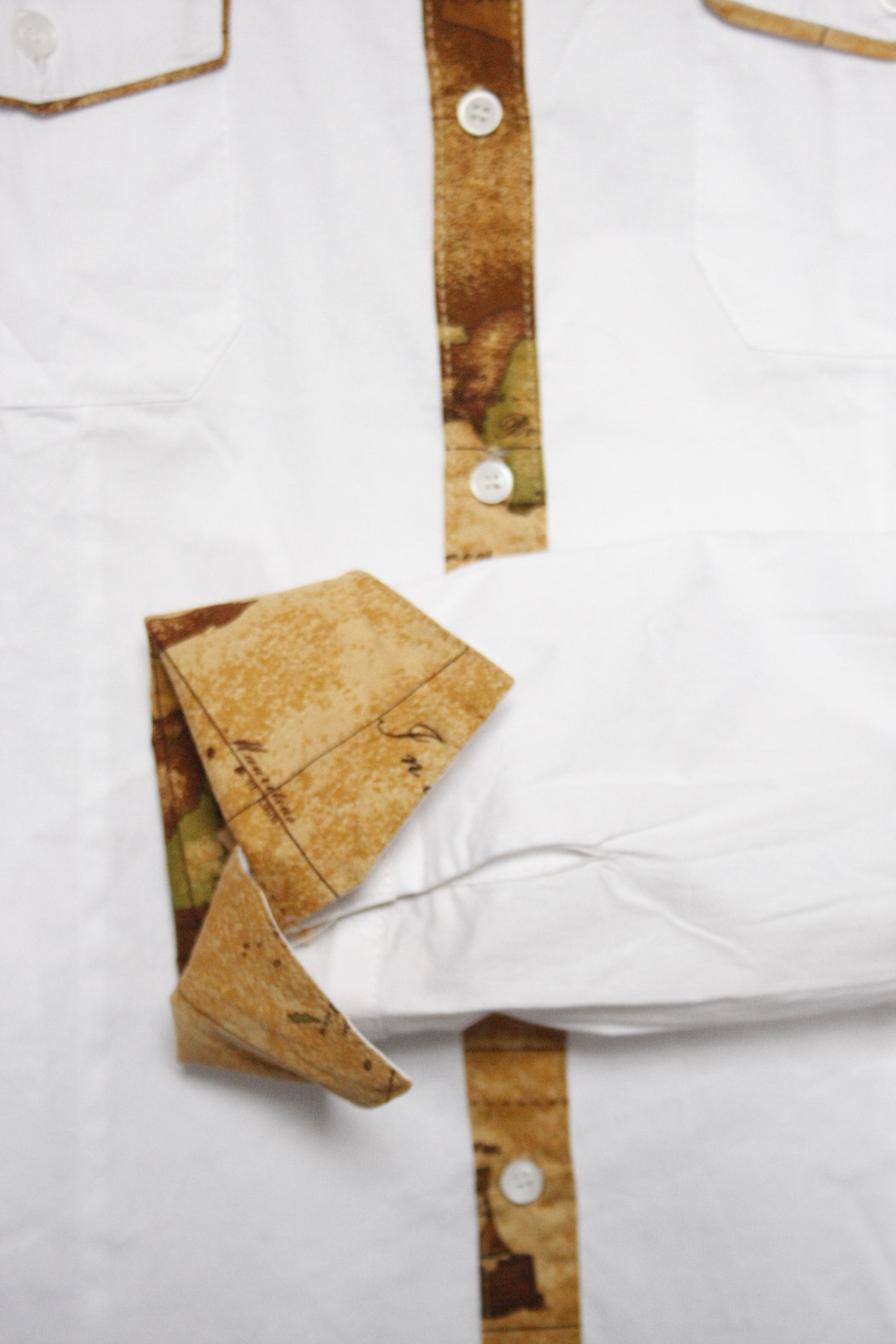 Weißes Hemd mit Braun/grünem Kragen und Ärmel