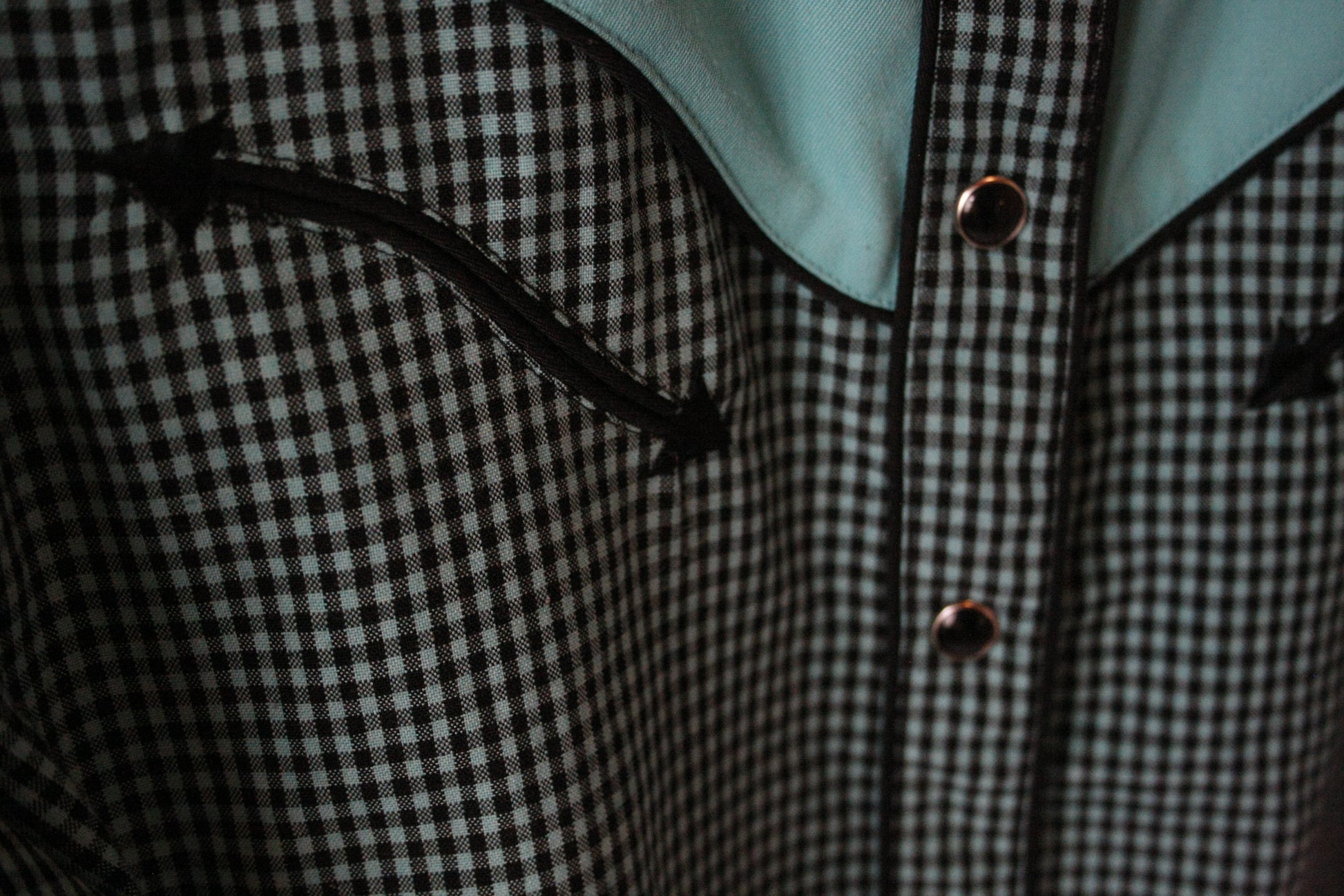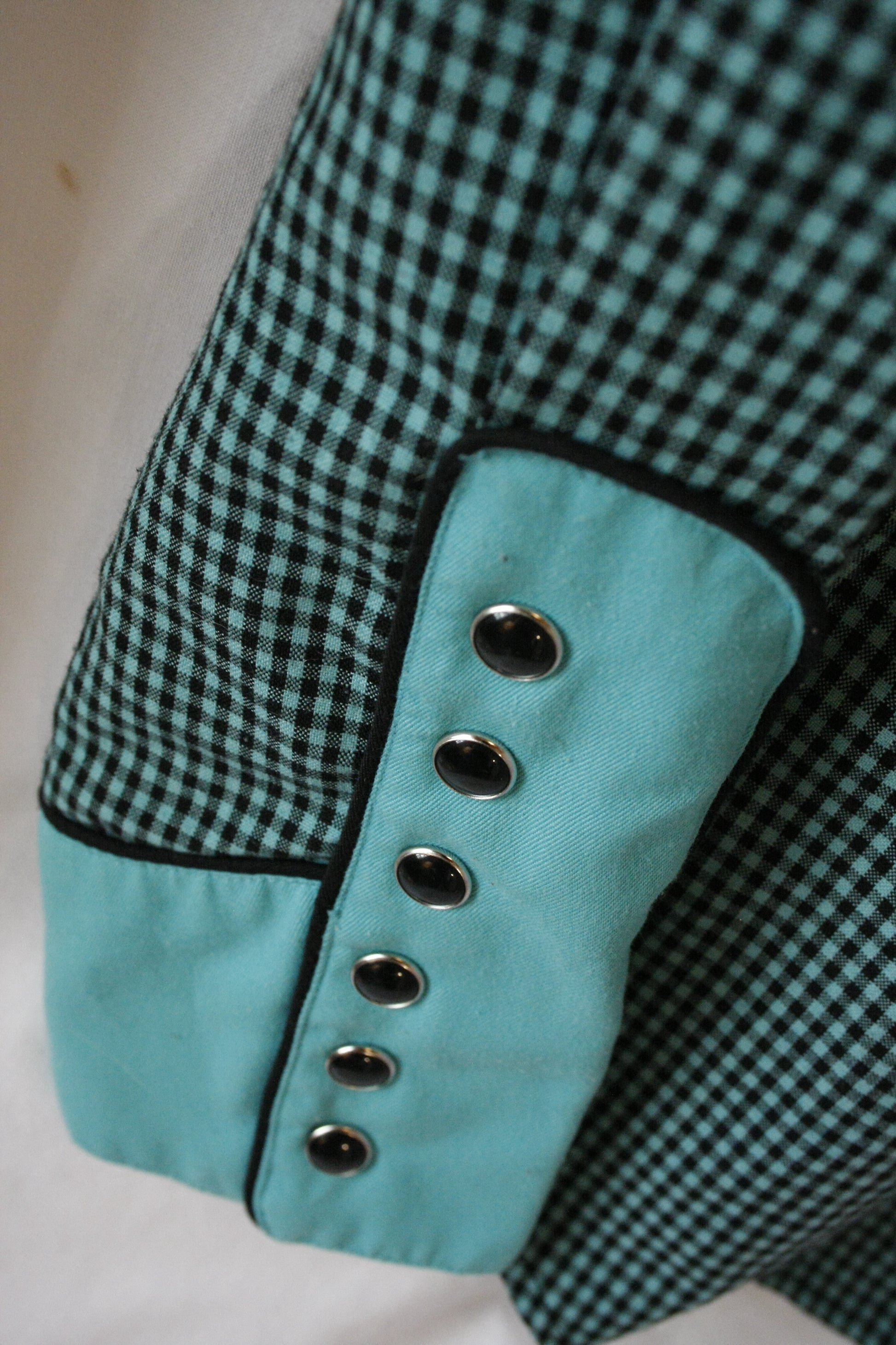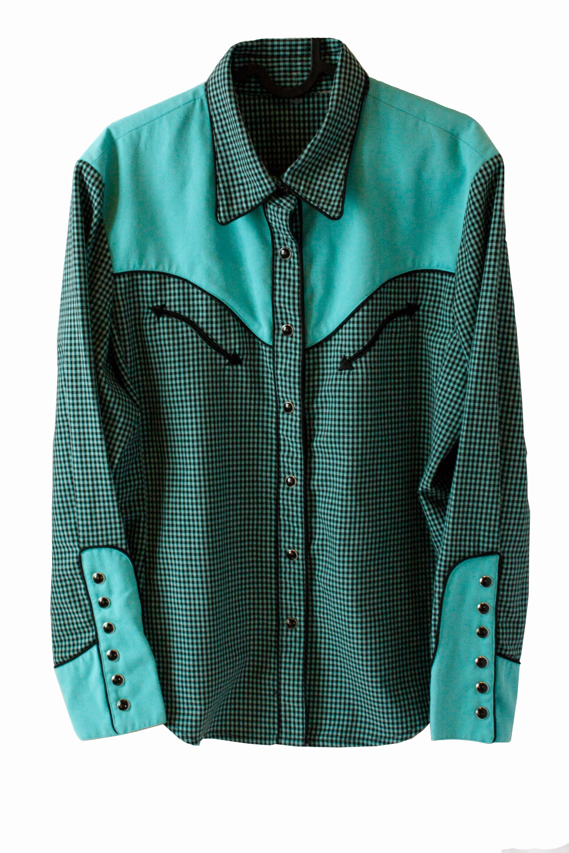 Showoberteil Old School mit Karo Muster und schwarzen Pearl Snaps in der Farbe türkis