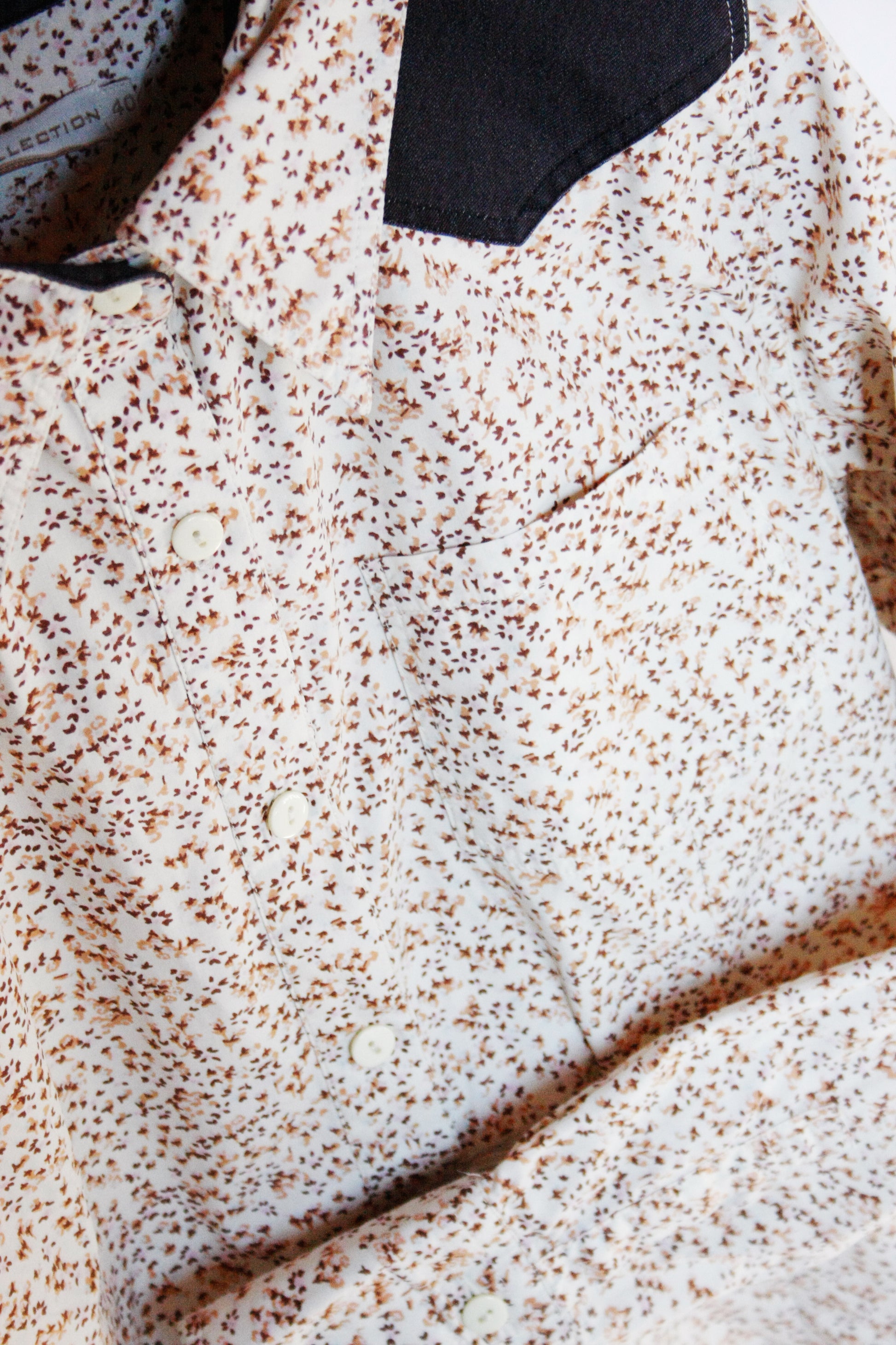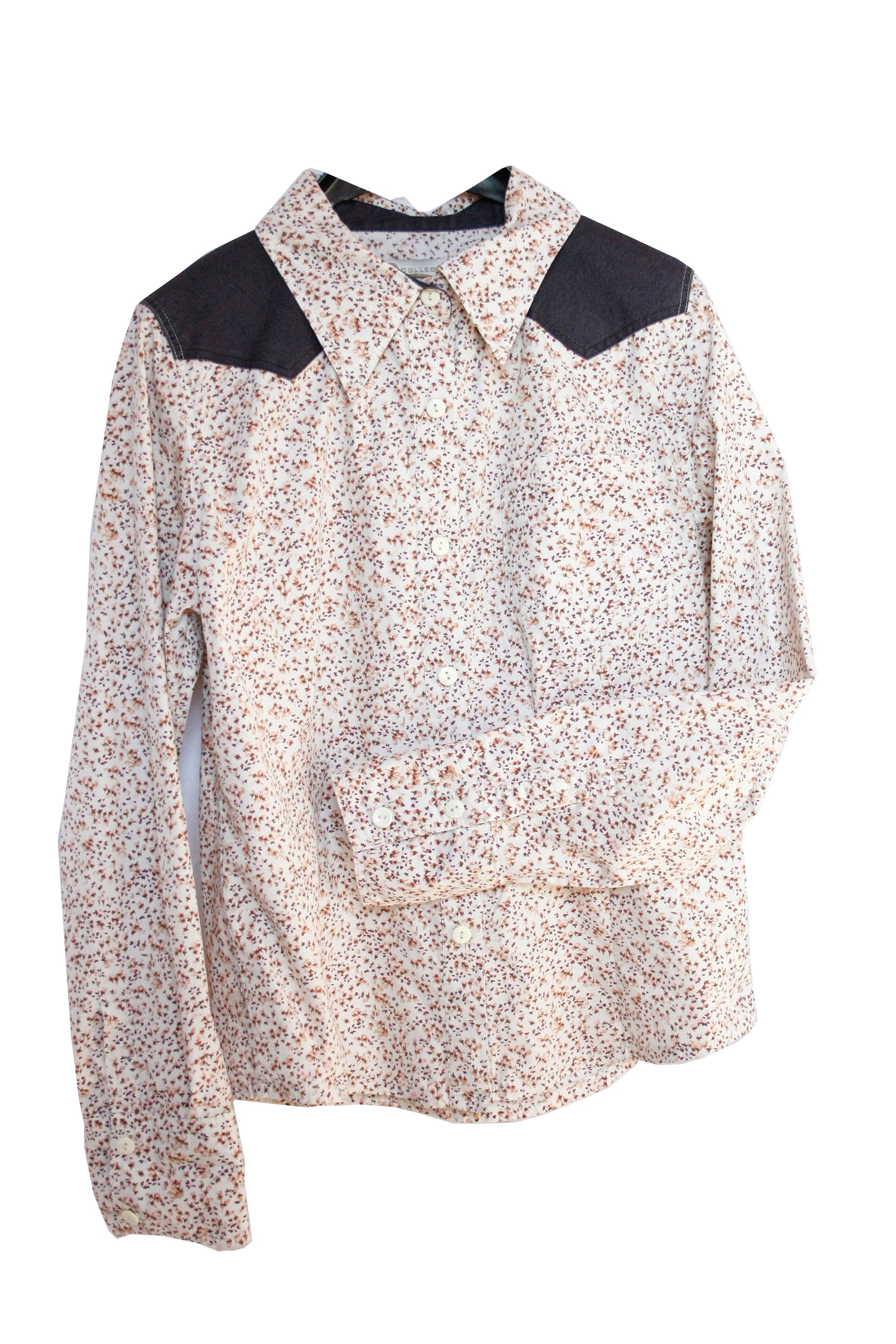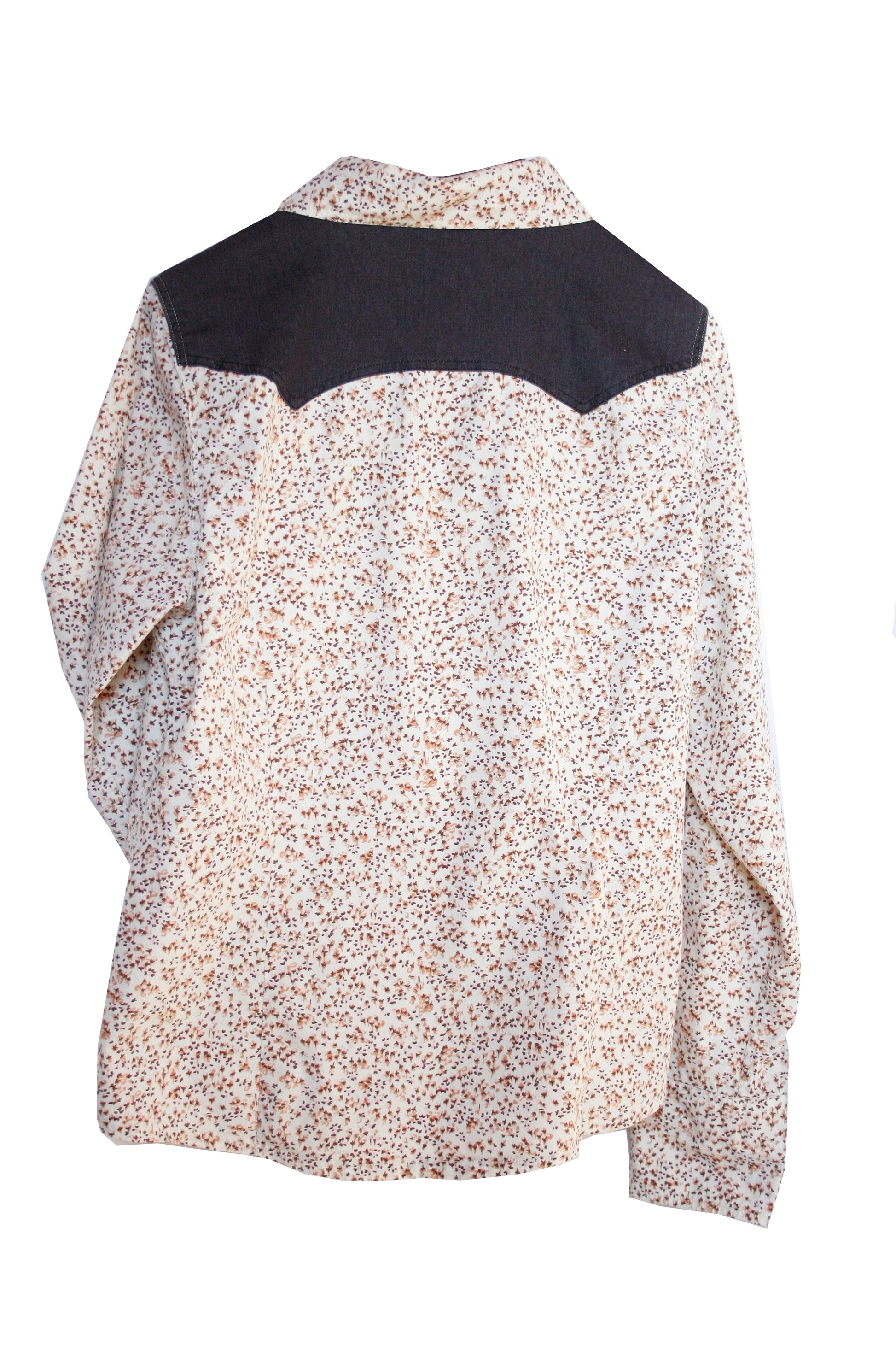 Vintage Showoberteil für Ranchriding mit Blumen Muster und schwarzen Jeans Details
