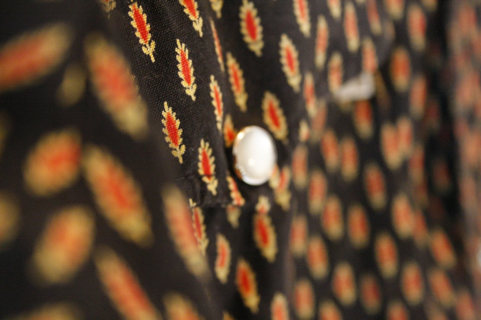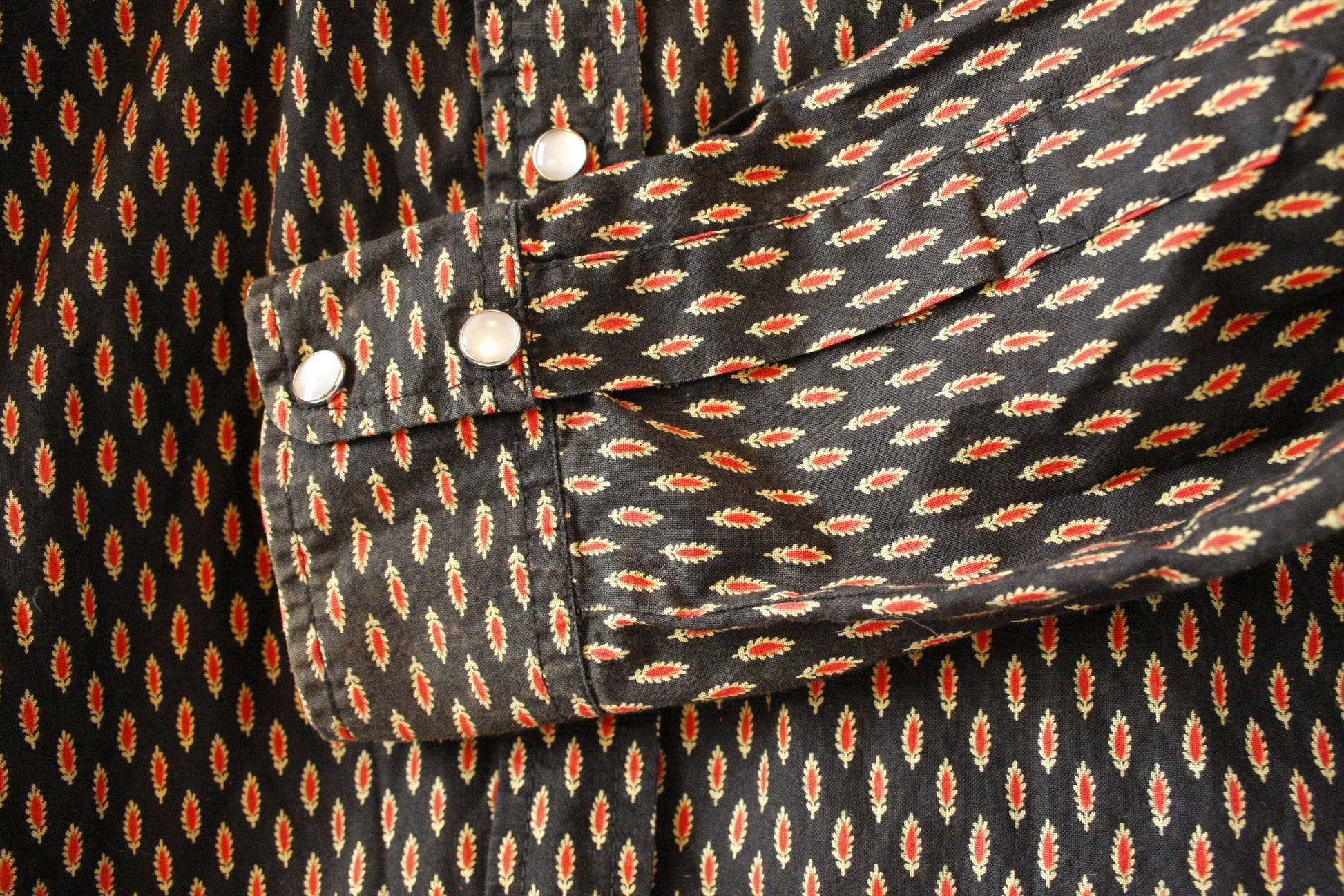 Vintage Showoberteil mit Paisley Patches und Pearl Snaps in Schwarz/Rot
