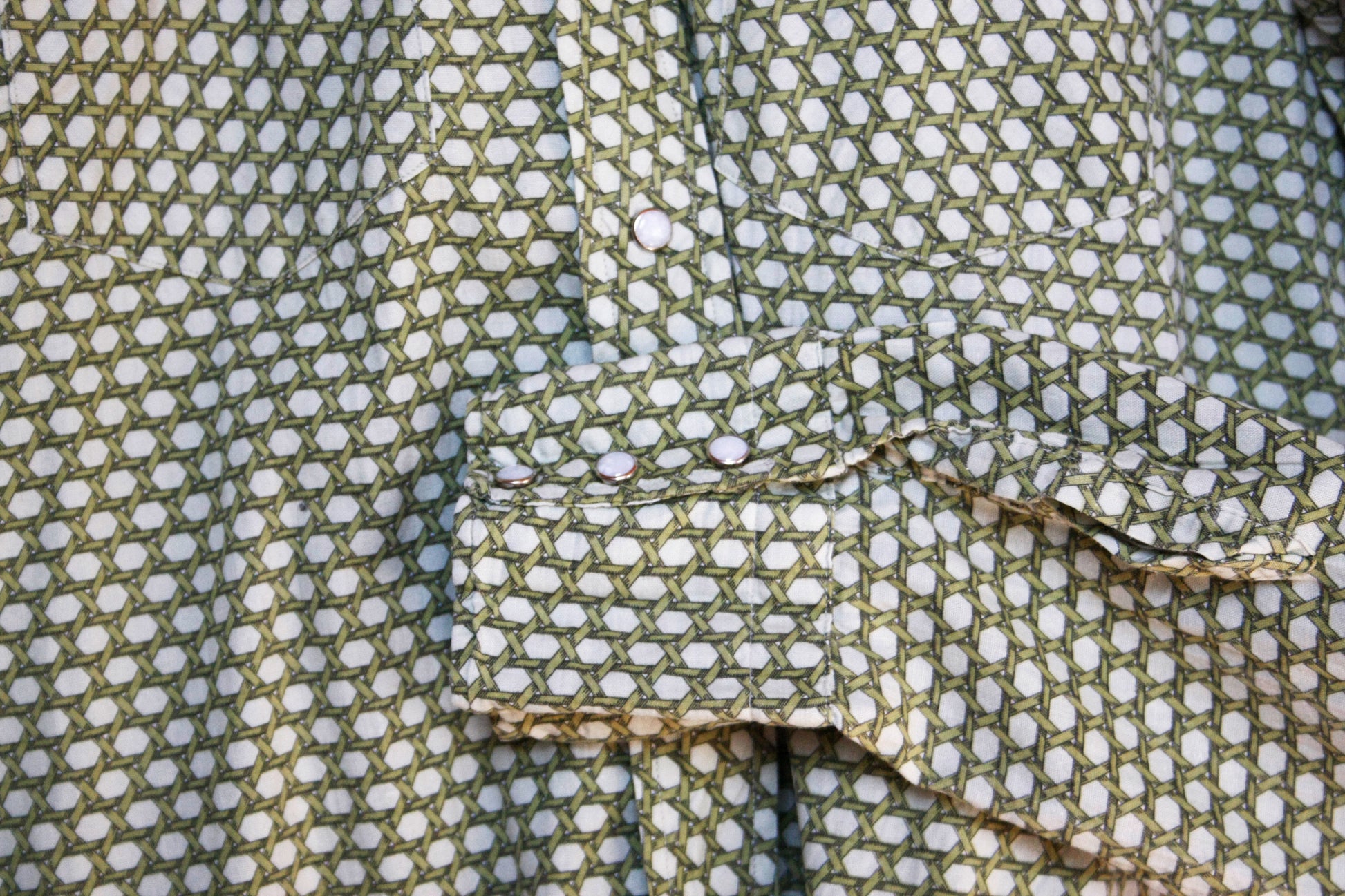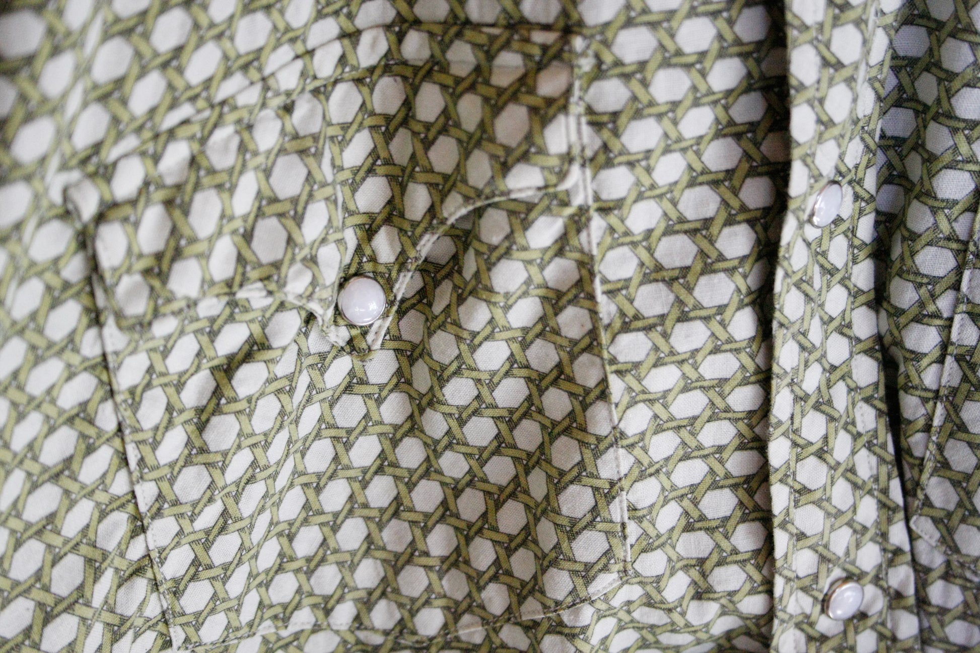 Vintage Showoberteil für Ranchriding mit Pattern Muster und Pearl Snaps und Ziernaht in Grün