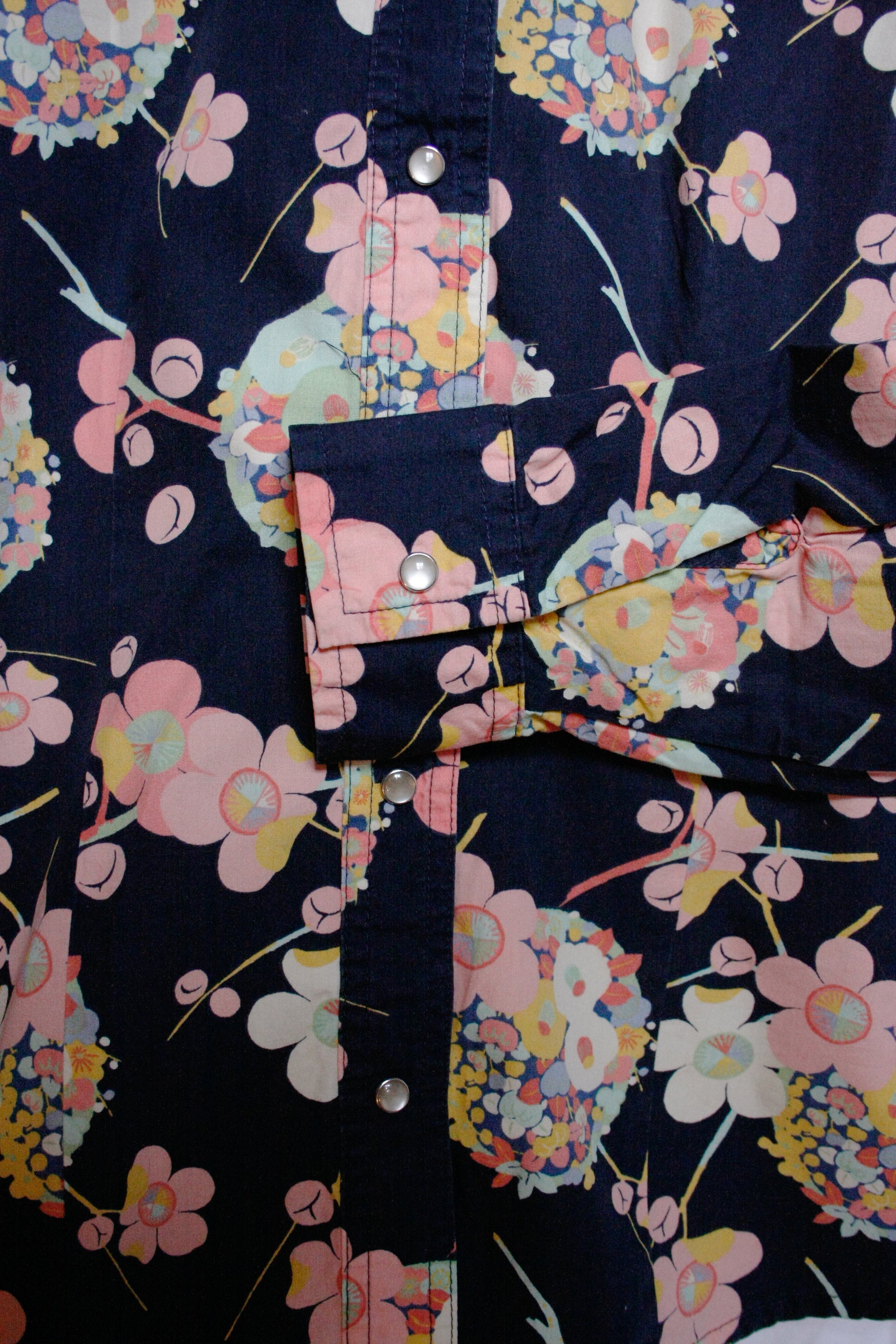 Vintage Showshirt für Ranchriding in floralem Muster, Pearl Snaps und tollen Details und Nähten.